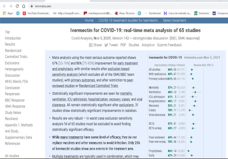 OBS: Esta noticia refere-se unicamente aos estudos trazidos ao conhecimento público através do dominio:https://ivmmeta.com/